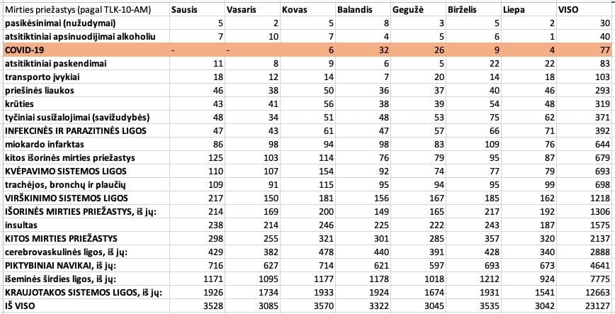 Kaip nurodoma ligų statistikos lentelėje, per šešis mėnesius PGR (niekam netikę testai) testais koronavirusas nustatytas pas 2260 pacientus, pas 1670 iš jų virusas jau nenustatomas.